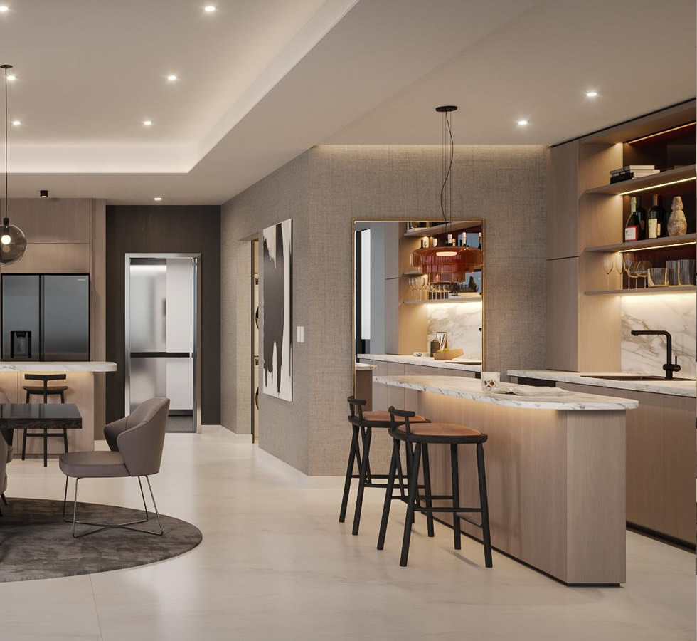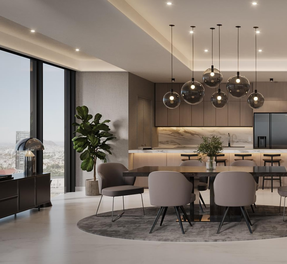 Inspirado en los jardines celestiales, un santuario de lujo y serenidad que ofrece un espacio exclusivo y refinado para una vida plena. Diseño moderno con doble altura y mezzanine, maximizando amplitud y luminosidad.