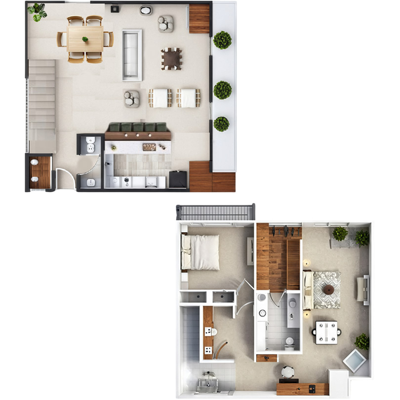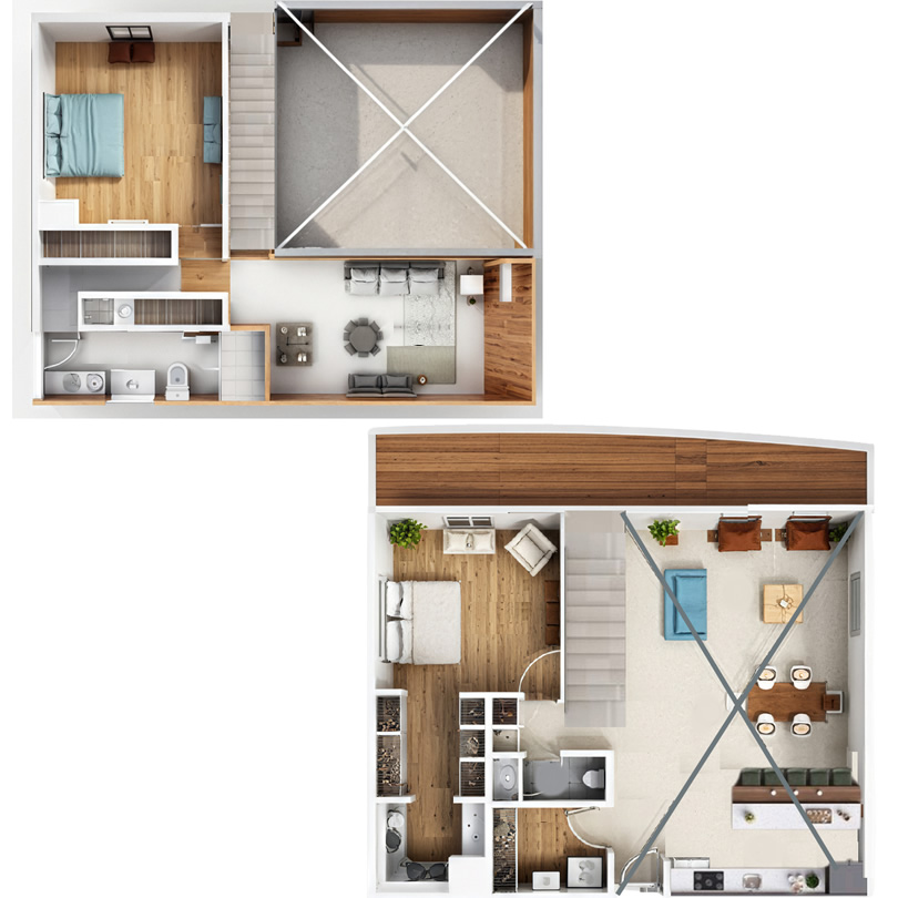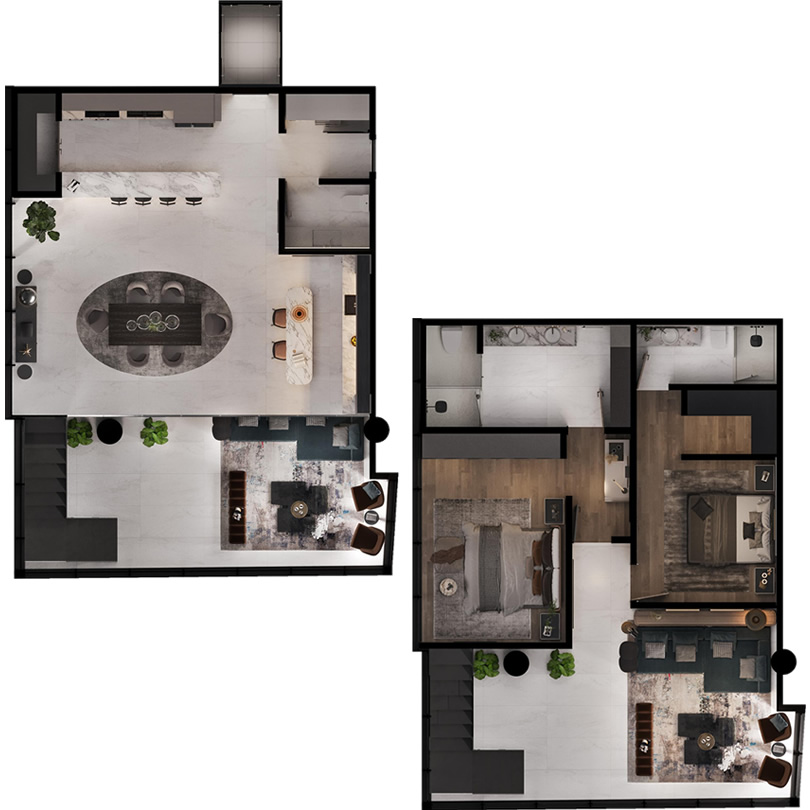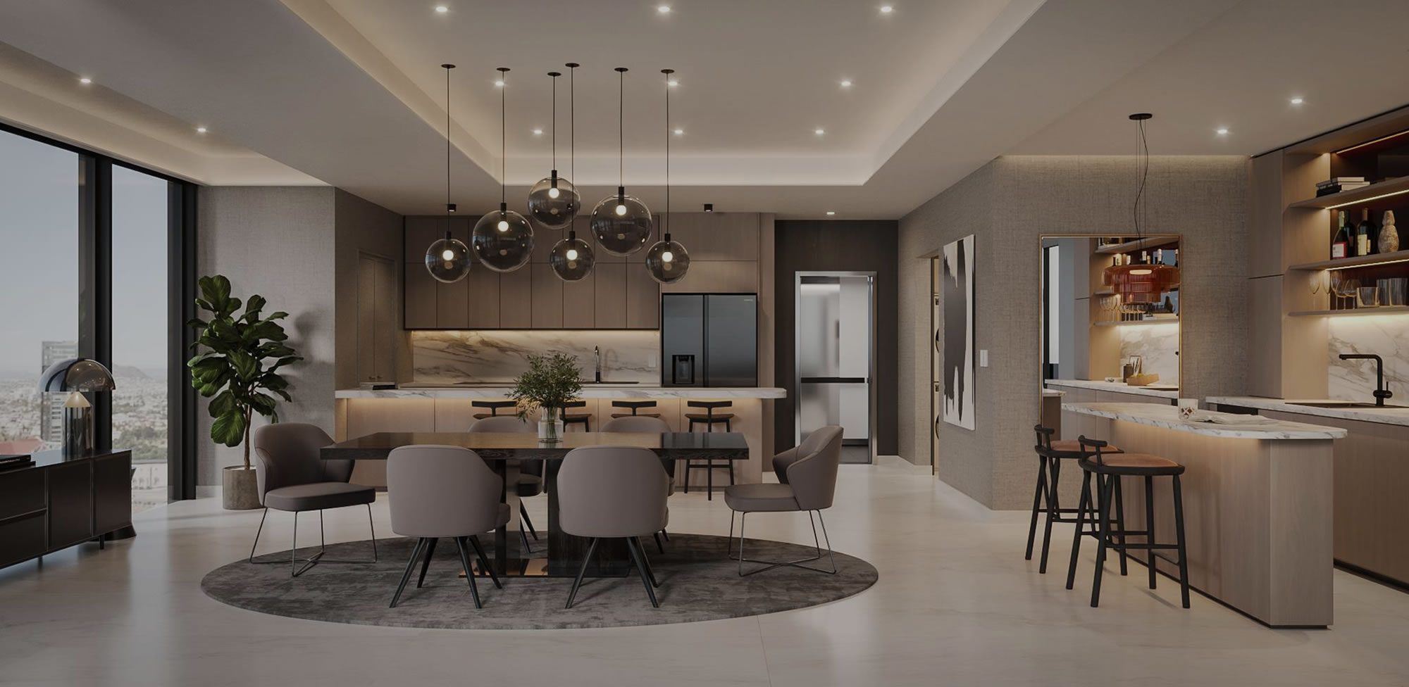Inspirado en los jardines celestiales, un santuario de lujo y serenidad que ofrece un espacio exclusivo y refinado para una vida plena. Diseño moderno con doble altura y mezzanine, maximizando amplitud y luminosidad.